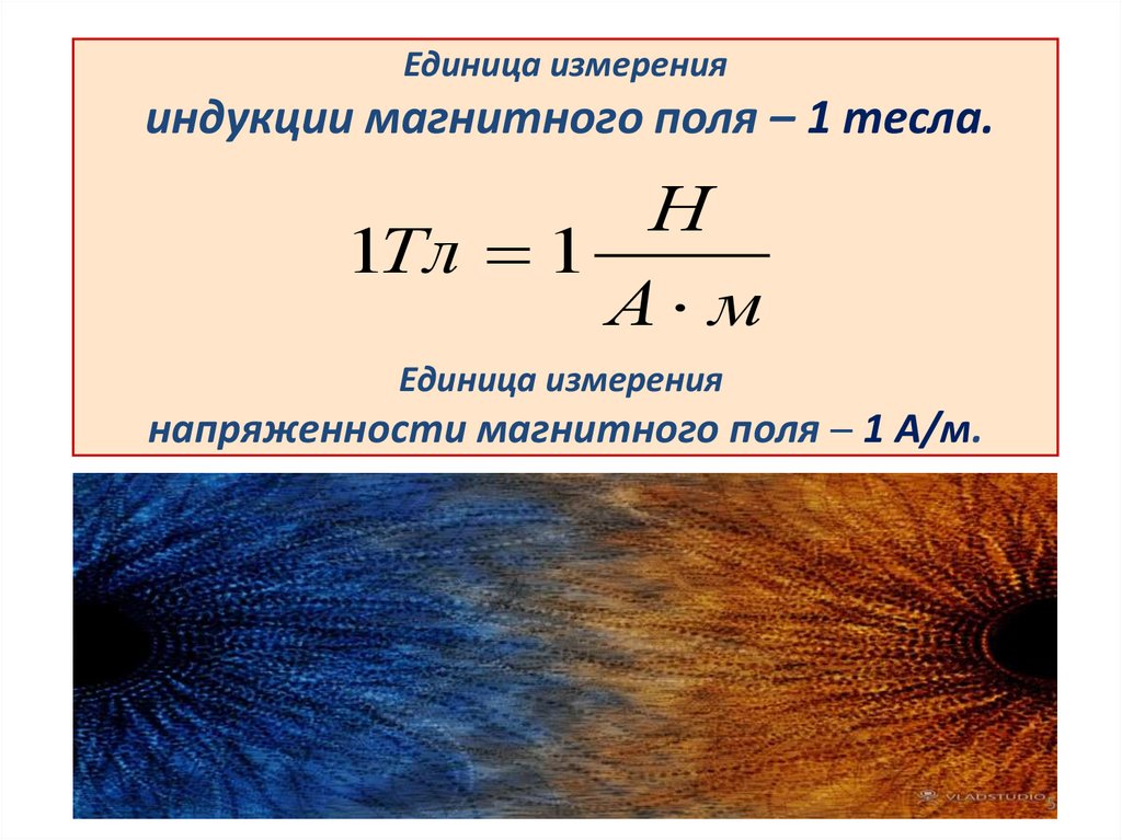 Единица измеренияиндукции магнитного поля – 1 тесла.