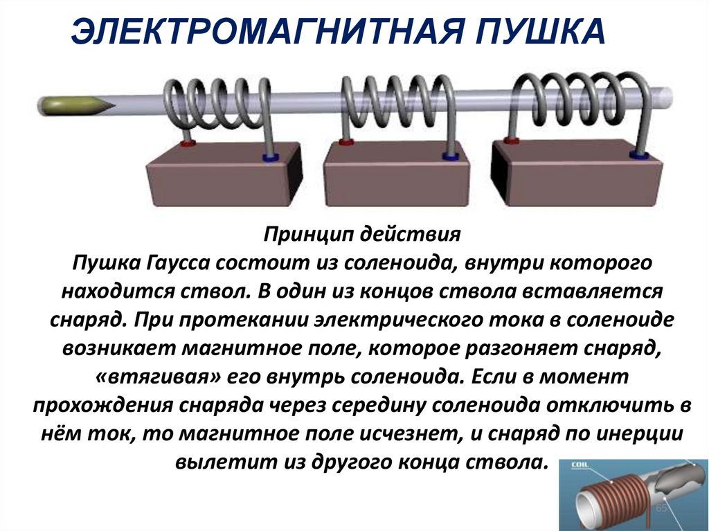 Пушка Гаусса состоит из соленоида, внутри которого