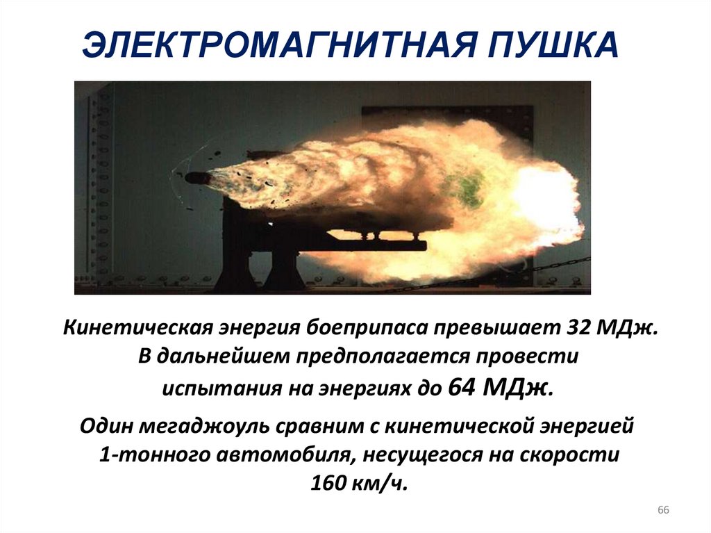 ЭЛЕКТРОМАГНИТНАЯ ПУШКАКинетическая энергия боеприпаса превышает 32 МДж.