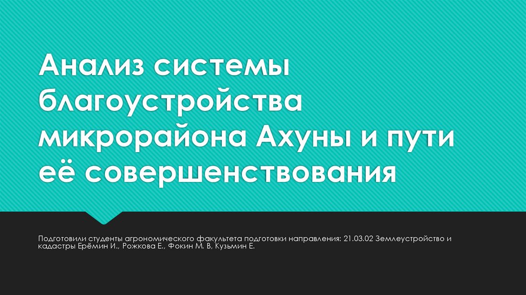 Подготовили студенты агрономического факультета подготовки направления: 21.03.02 Землеустройство икадастры Ерёмин И., Рожкова Е., Фокин М. В, Кузьмин Е.