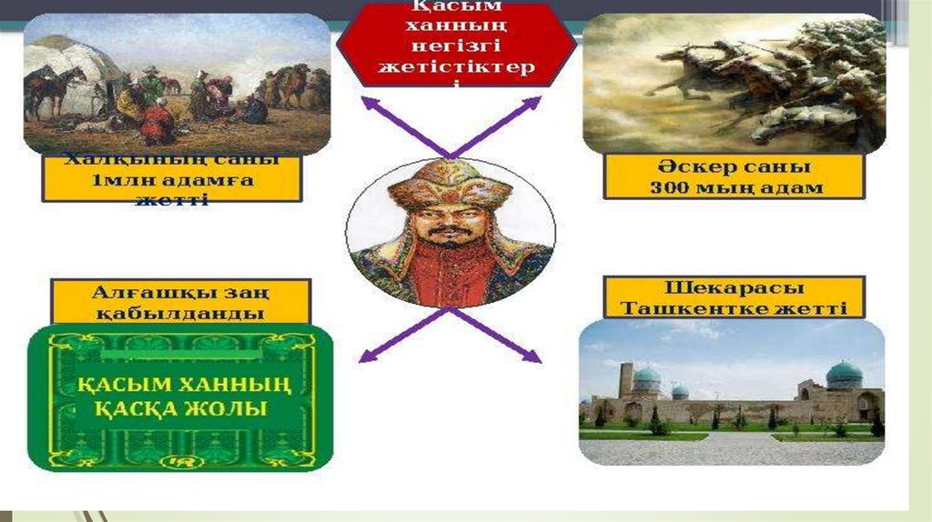 • Қасым хан кезінде қазақтар дербес мемлекет ретінде Орта Азия