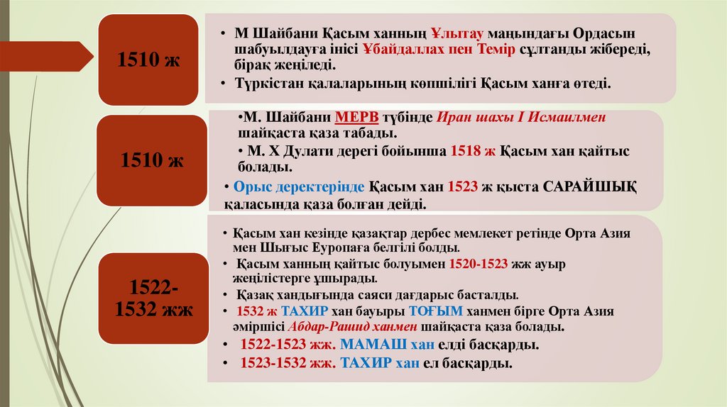 • Түркістан қалаларының көпшілігі Қасым ханға өтеді.