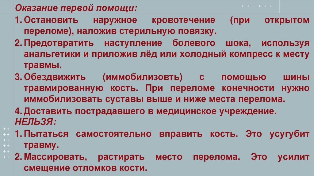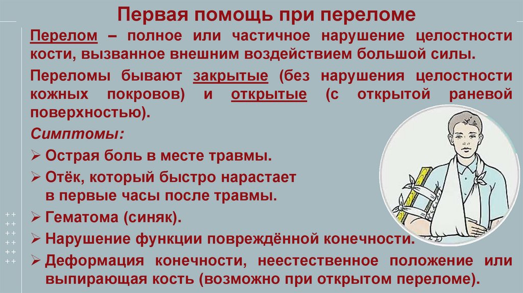 Первая помощь при переломеПерелом – полное или частичное нарушение целостности
