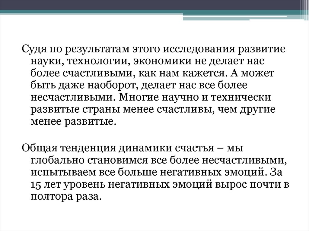 Судя по результатам этого исследования развитиенауки, технологии, экономики не делает нас