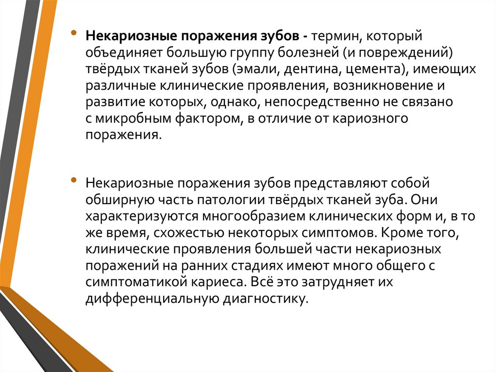 • Некариозные поражения зубов - термин, которыйобъединяет большую группу болезней (и повреждений)