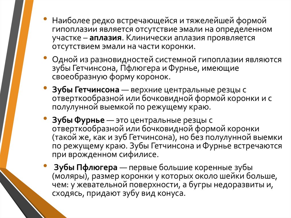 • Гипоплазия (hypoplasia) — порок развития,заключающийся в недоразвитии зуба или его тканей.