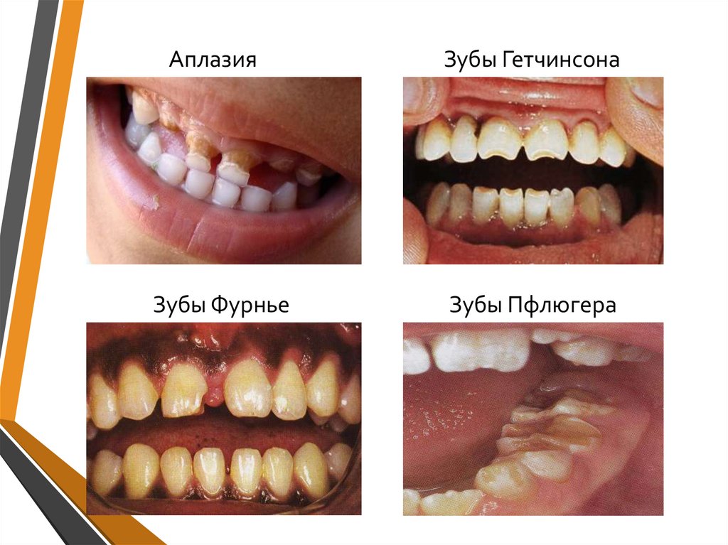 по режущему краю. Зубы Гетчинсона и Фурнье встречаются