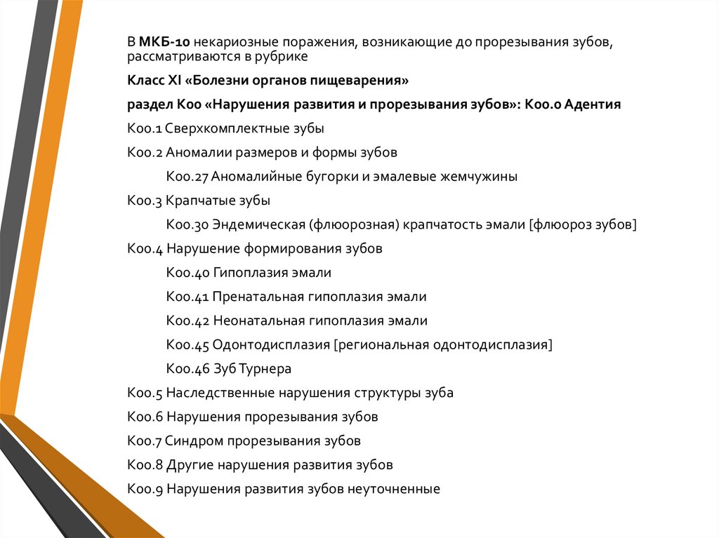 В МКБ-10 некариозные поражения, возникающие до прорезывания зубов,рассматриваются в рубрике