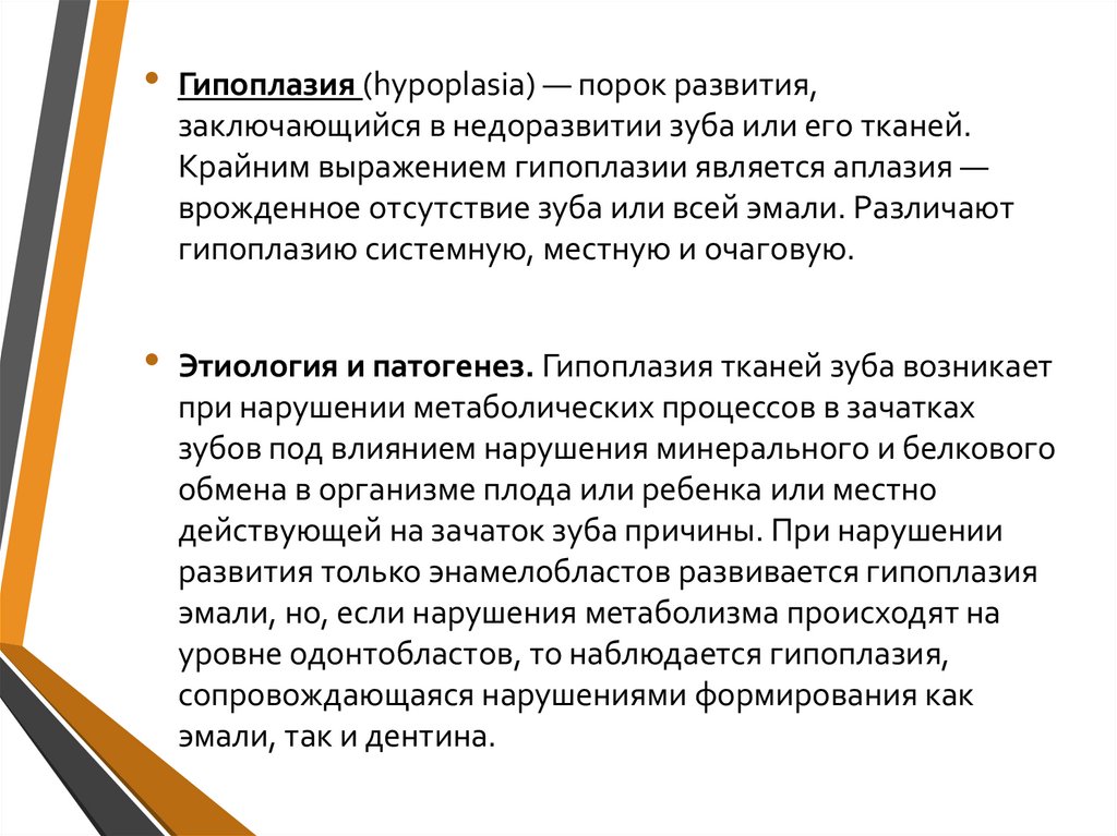 • Этиология и патогенез. Гипоплазия тканей зуба возникает