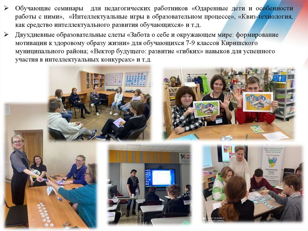 Обучающие семинары для педагогических работников «Одаренные дети и особенностиработы с ними», «Интеллектуальные игры в образовательном процессе», «Квиз-технология,