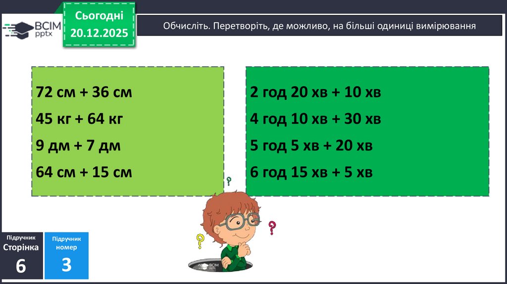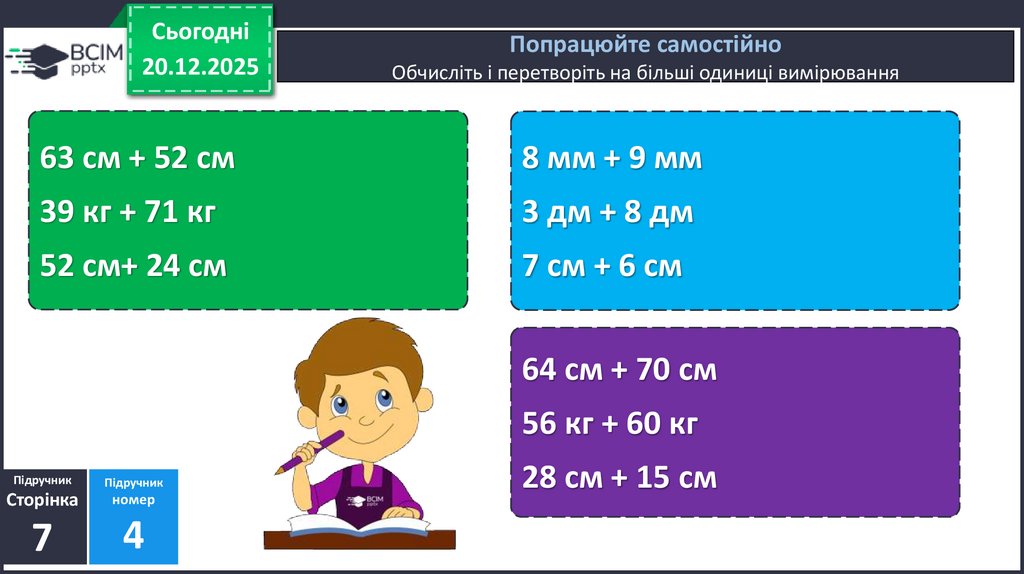 Обчисліть. Перетворіть, де можливо, на більші одиниці вимірювання