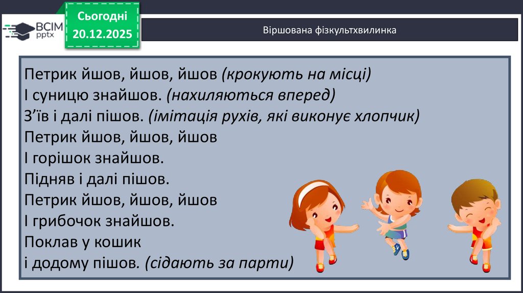 Віршована фізкультхвилинка