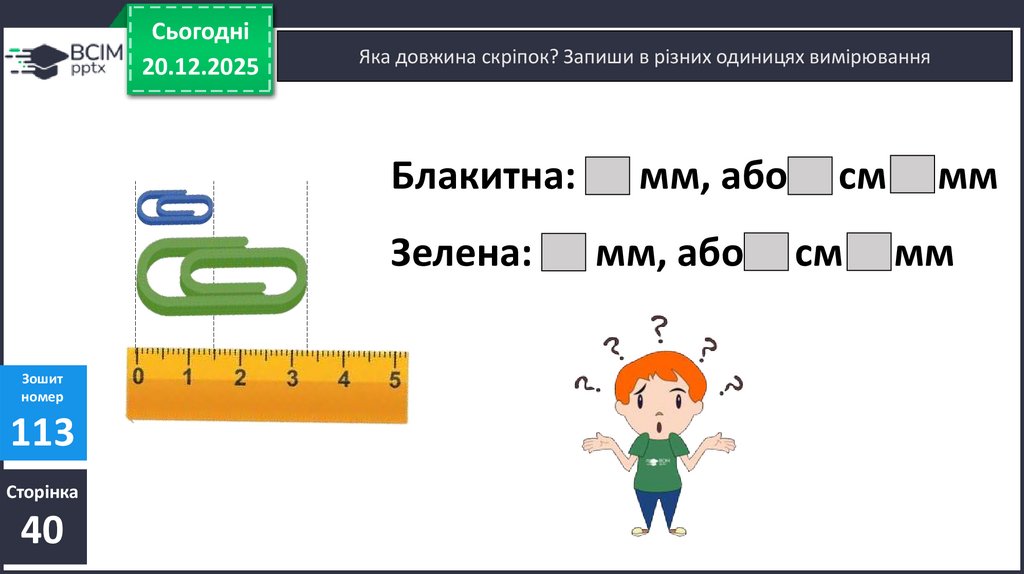Яка довжина скріпок? Запиши в різних одиницях вимірювання