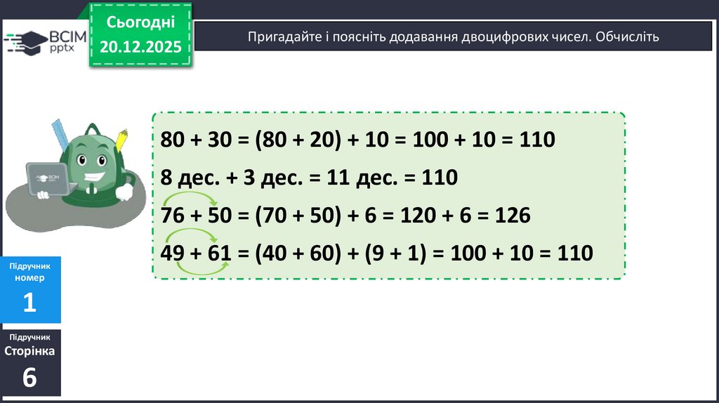Пригадайте і поясніть додавання двоцифрових чисел. Обчисліть