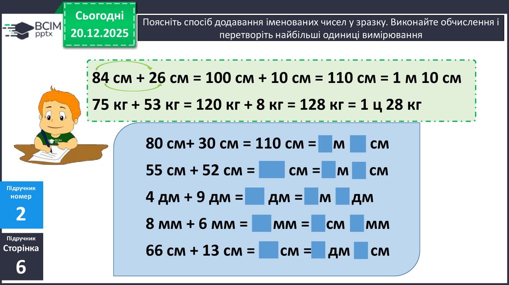Поясніть спосіб додавання іменованих чисел у зразку. Виконайте обчислення і