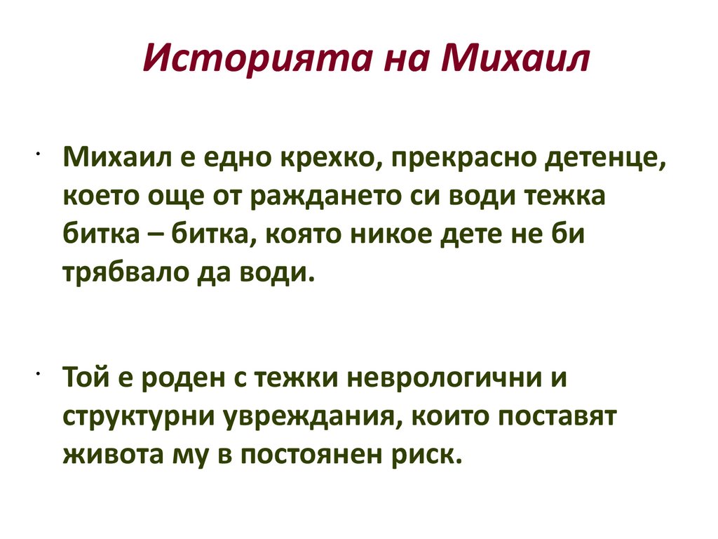 Историята на МихаилМихаил е едно крехко, прекрасно детенце,