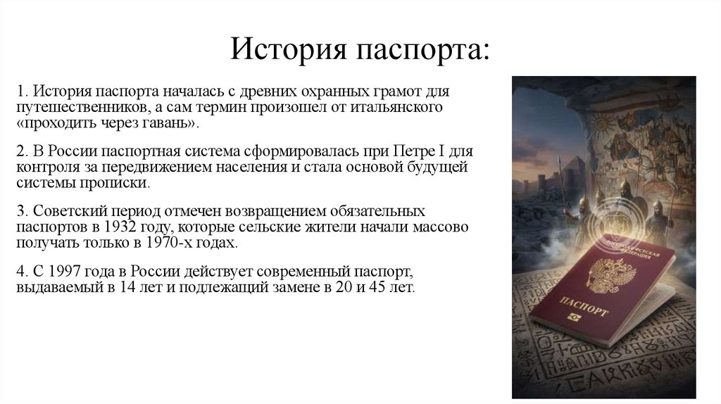 История паспорта:1. История паспорта началась с древних охранных грамот для