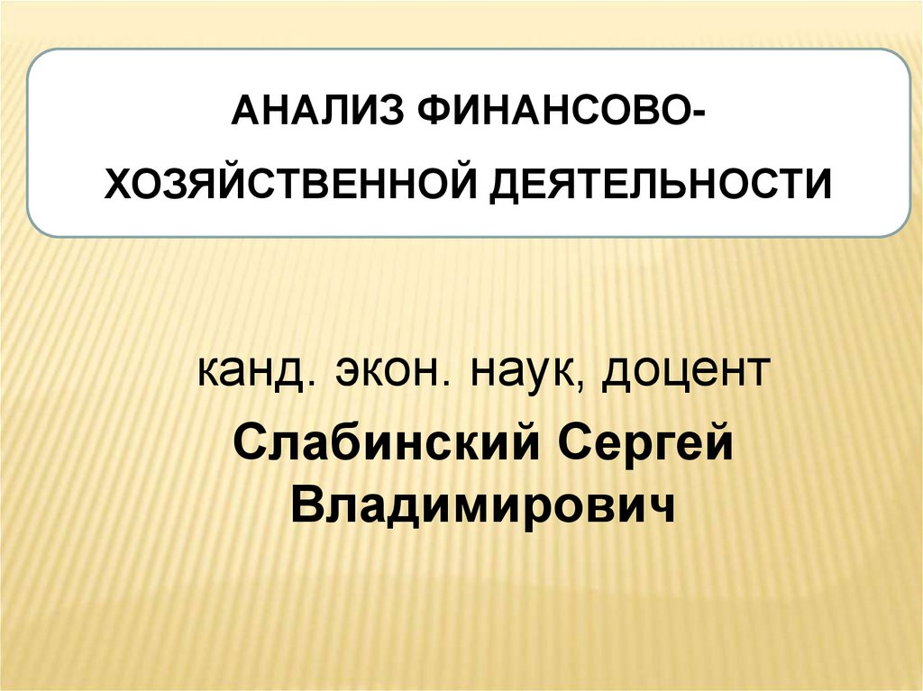 АНАЛИЗ ФИНАНСОВОХОЗЯЙСТВЕННОЙ ДЕЯТЕЛЬНОСТИканд. экон. наук, доцент