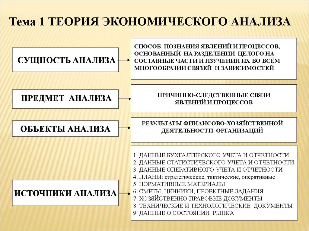 Тема 1 ТЕОРИЯ ЭКОНОМИЧЕСКОГО АНАЛИЗАСУЩНОСТЬ АНАЛИЗА