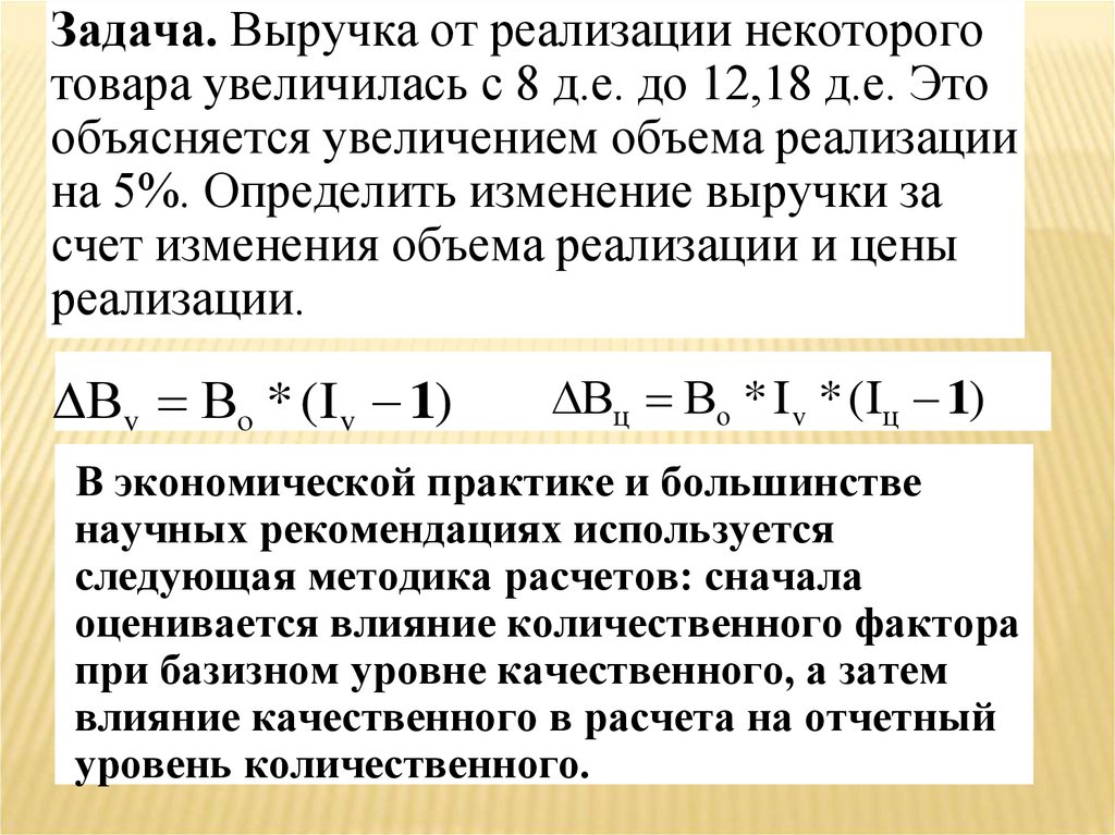 Задача. Выручка от реализации некотороготовара увеличилась с 8 д.е. до 12,18 д.е. Это