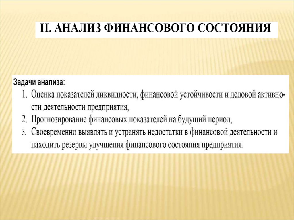 1. Задачи анализа: 1.​ Систематический контроль за выполнением планов реализации продукции и получением прибыли, 2.​ Определение