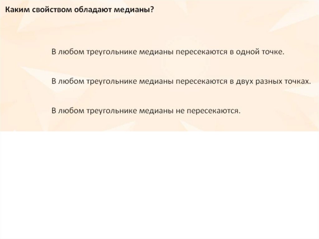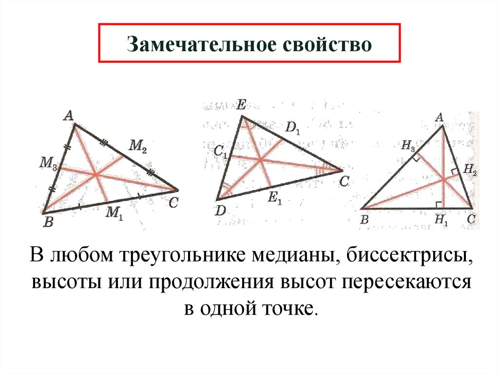 Замечательное свойствоВ любом треугольнике медианы, биссектрисы,