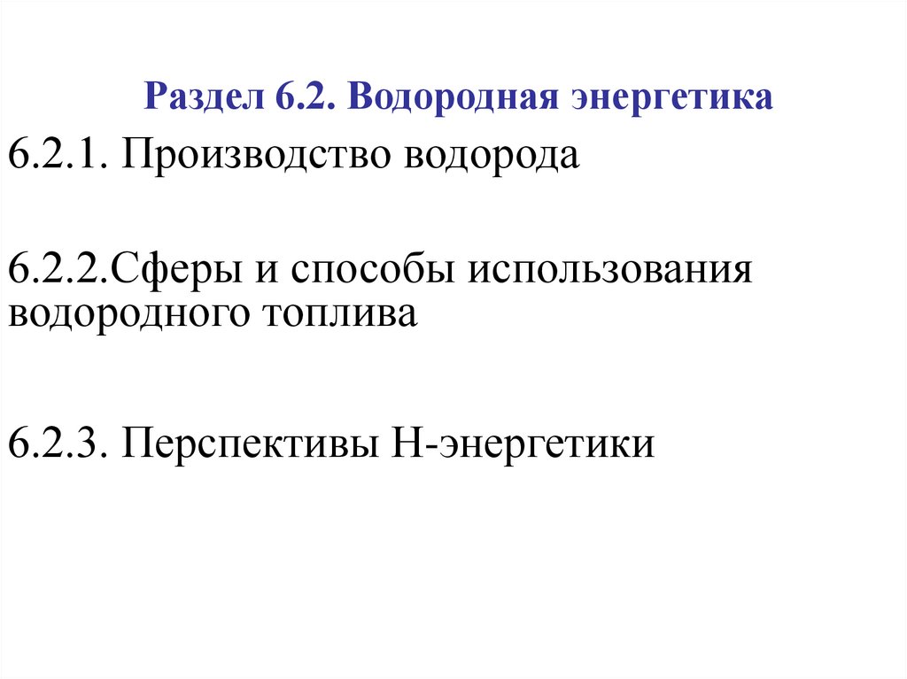 Раздел 6.2. Водородная энергетика6.2.1. Производство водорода