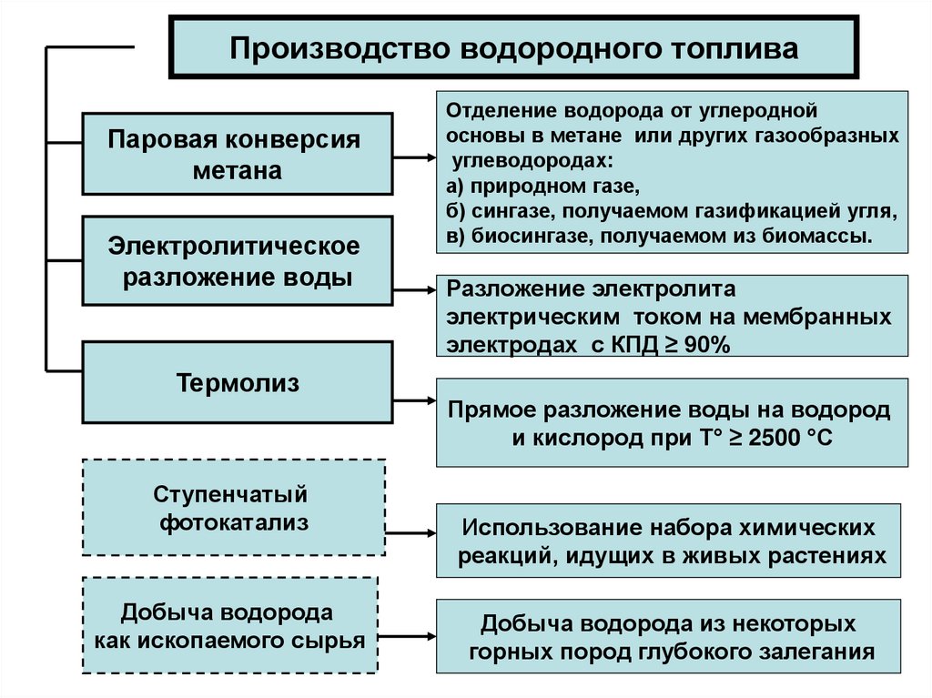 Водород можно получать 19-ю методами, ноэкономически приемлемыми на сегодня признаны: