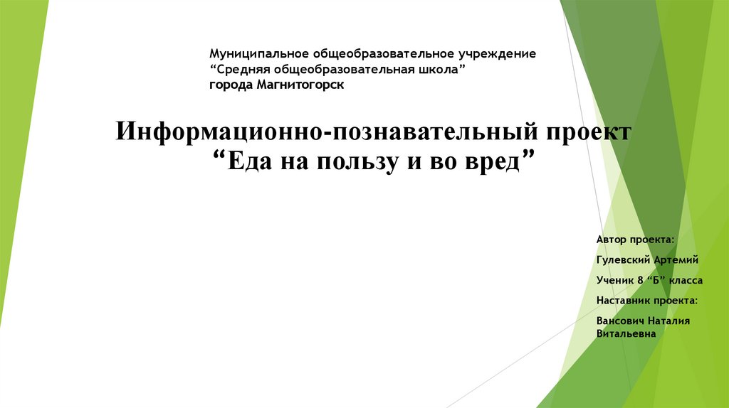 Информационно-познавательный проект“Еда на пользу и во вред”