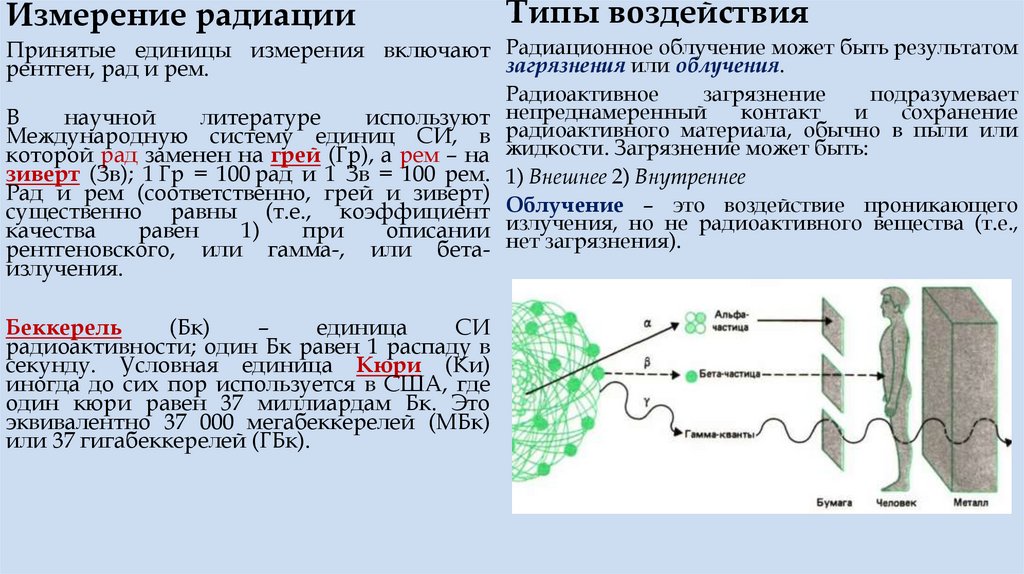 Принятые единицы измерения включают Радиационное облучение может быть результатом