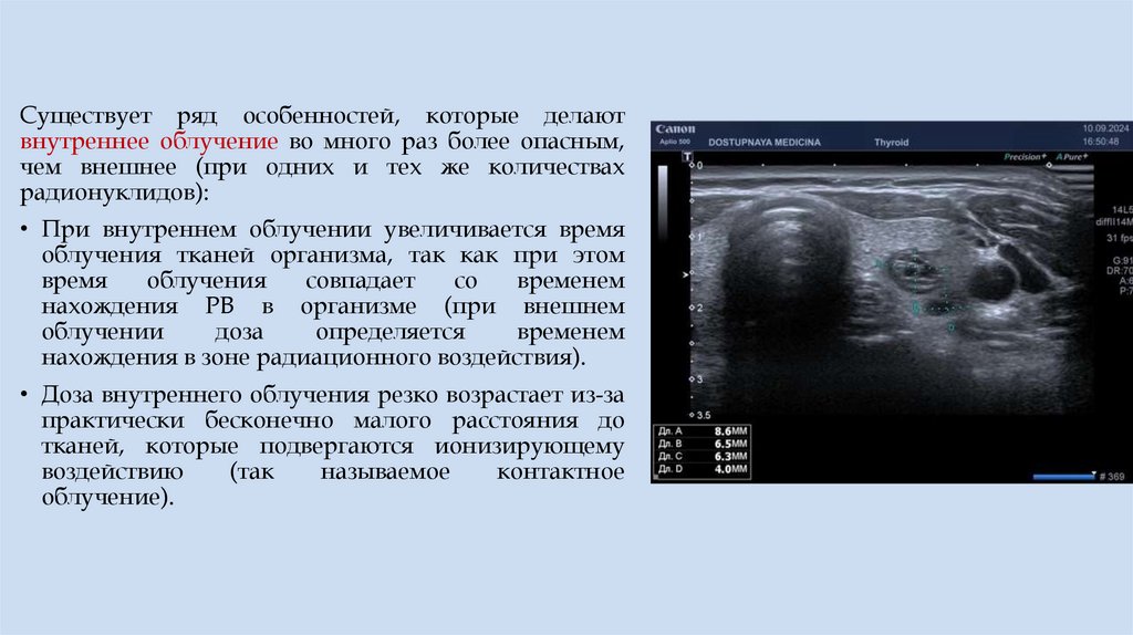Существует ряд особенностей, которые делаютвнутреннее облучение во много раз более опасным,