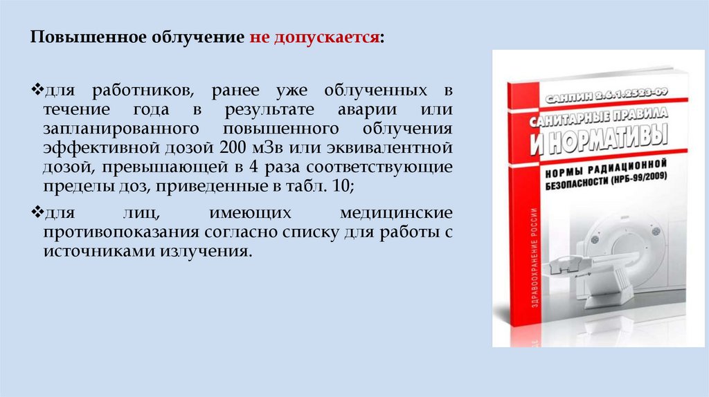 Повышенное облучение не допускается:для работников, ранее уже облученных в