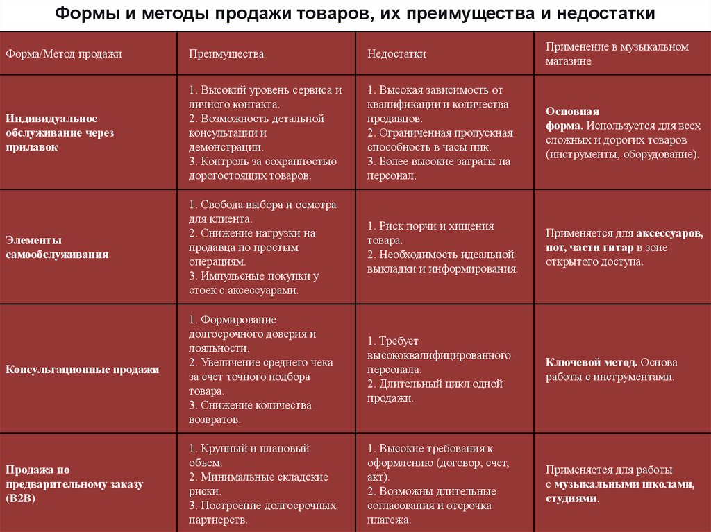 Специализация торгового предприятия по товарному профилю: классические/акустические/ бас