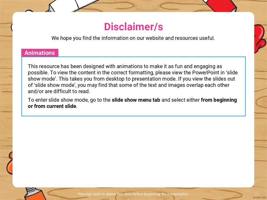possible. To view the content in the correct formatting, please view the PowerPoint in ‘slide