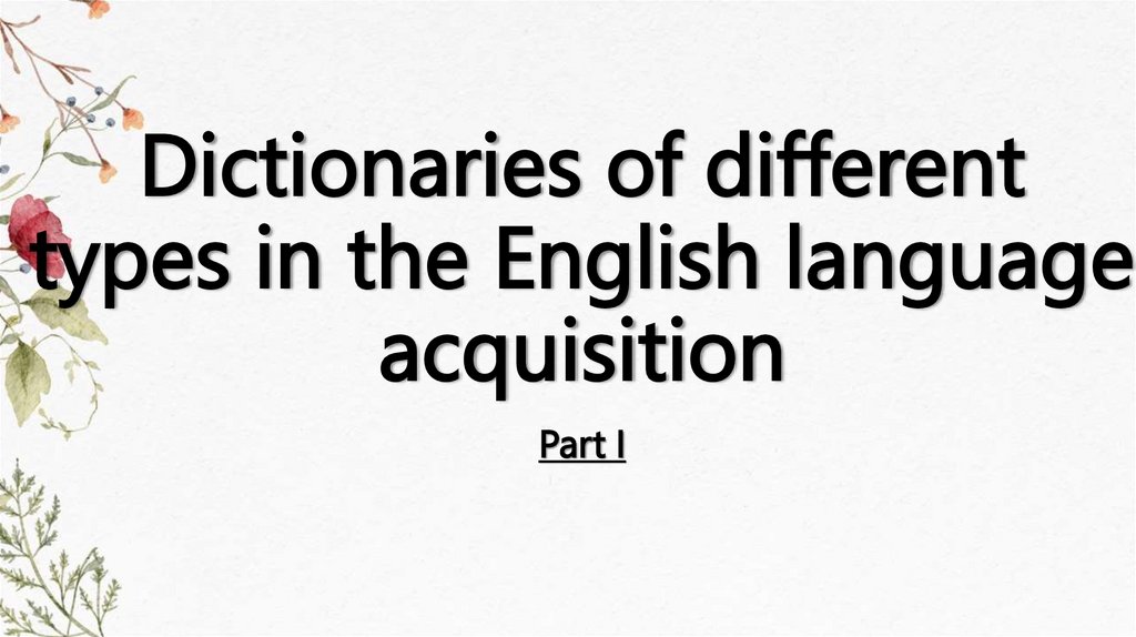 1. Dictionaries of different types in the English language acquisition Part I