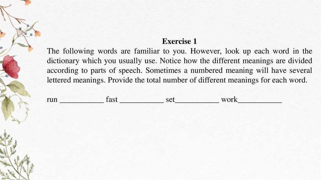 Exercise 1The following words are familiar to you. However, look up each word in the