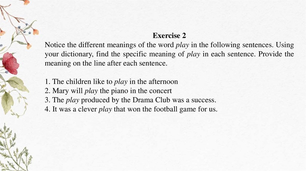 Exercise 2Notice the different meanings of the word play in the following sentences. Using