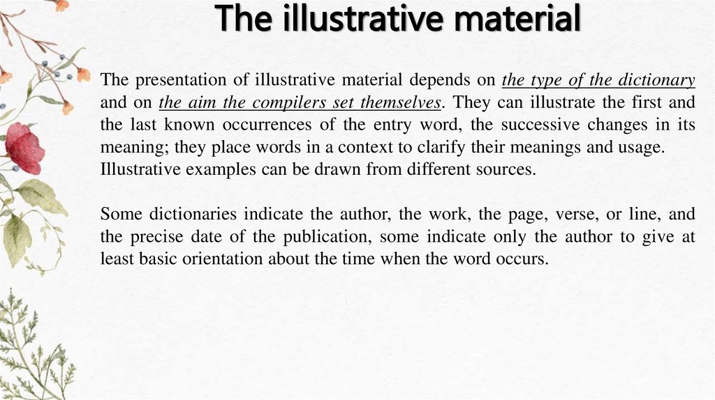 The illustrative materialThe presentation of illustrative material depends on the type of the dictionary