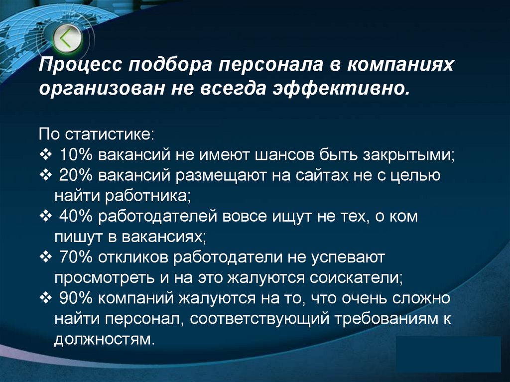 Процесс подбора персонала в компанияхорганизован не всегда эффективно.