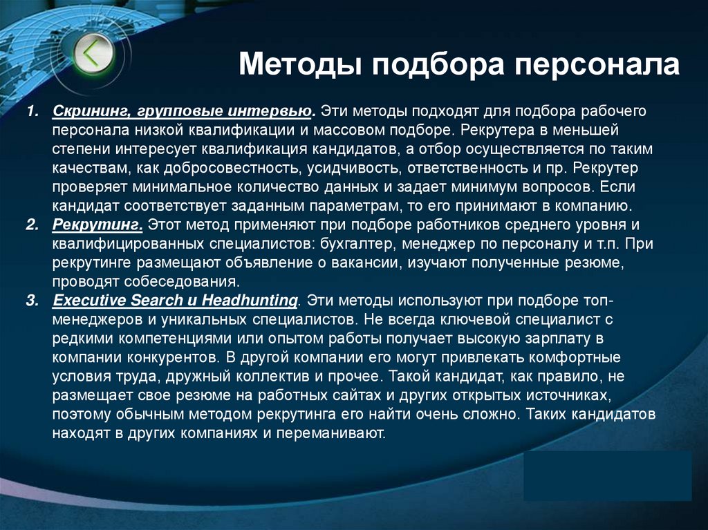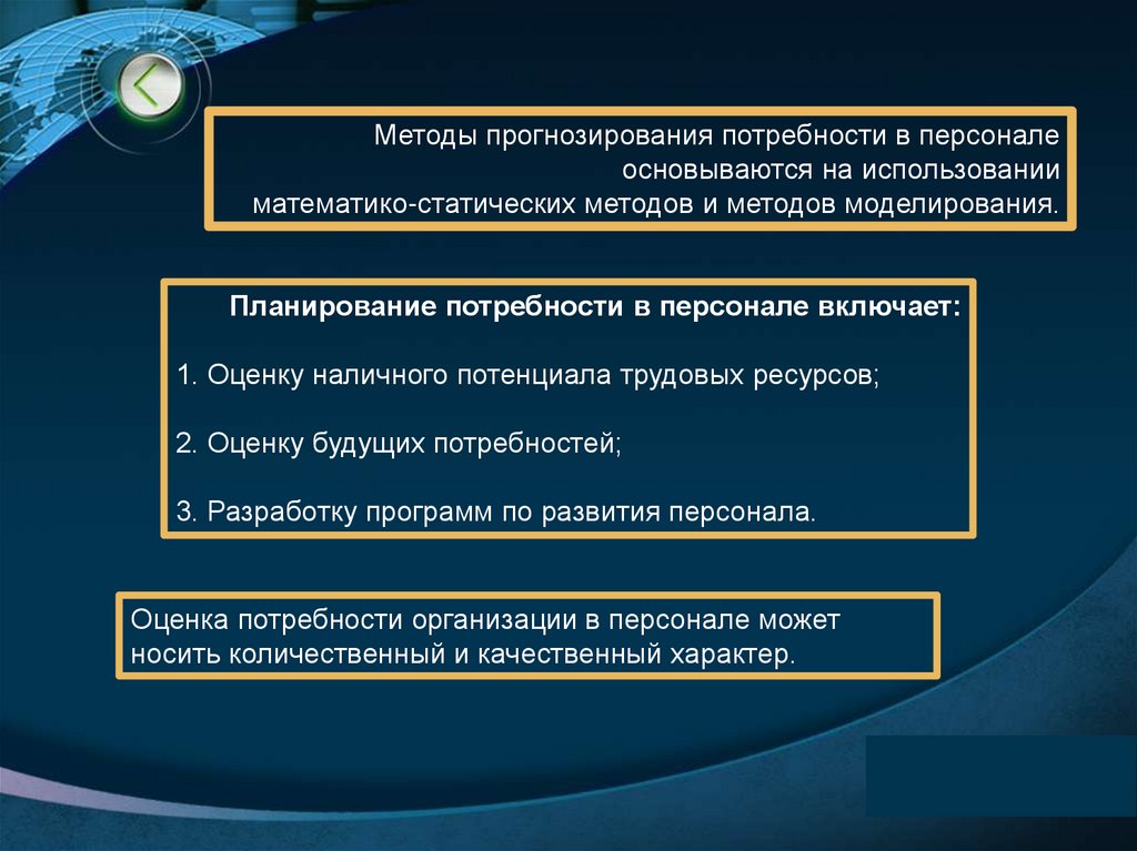 Методы прогнозирования потребности в персоналеосновываются на использовании
