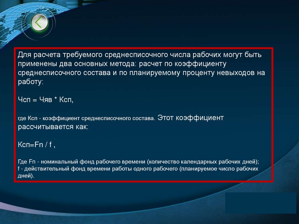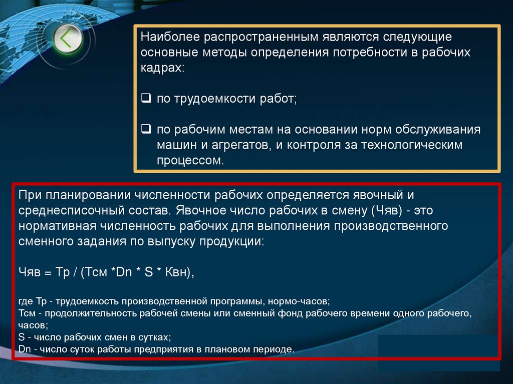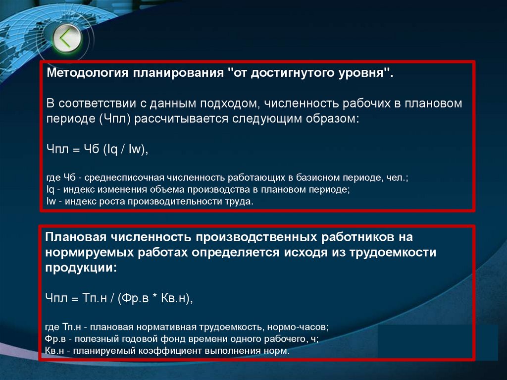 Методология планирования "от достигнутого уровня".В соответствии с данным подходом, численность рабочих в плановом