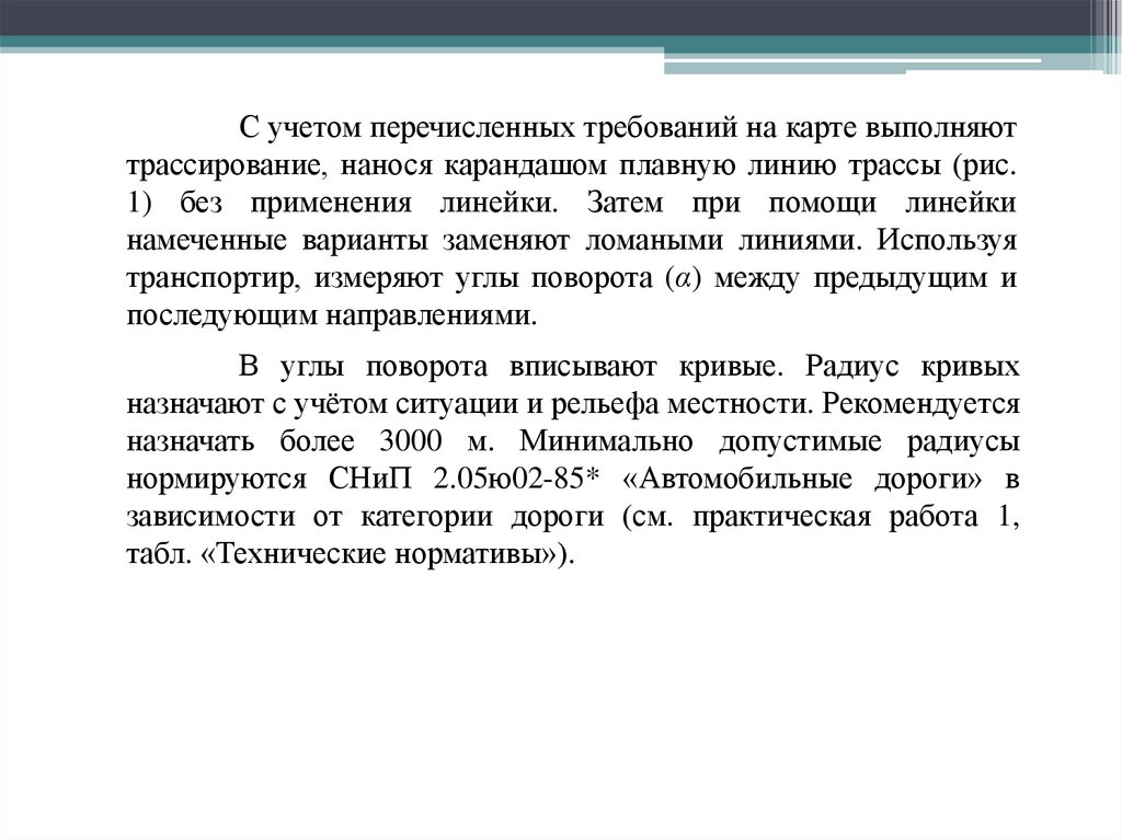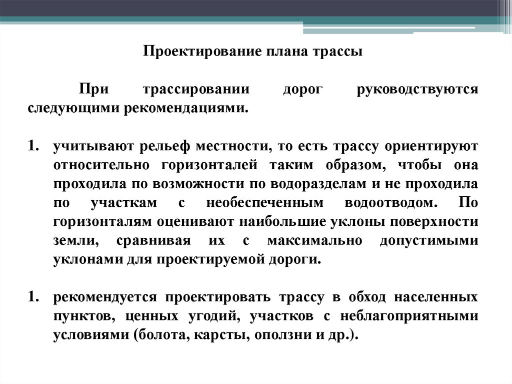 1. учитывают рельеф местности, то есть трассу ориентируют