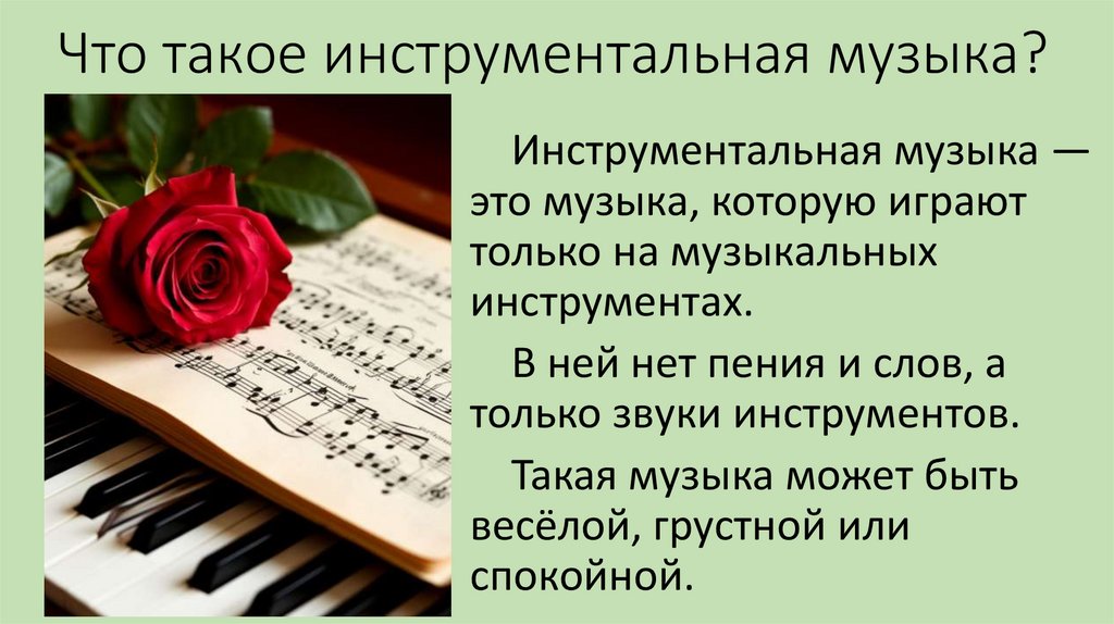 Что такое инструментальная музыка?Инструментальная музыка —