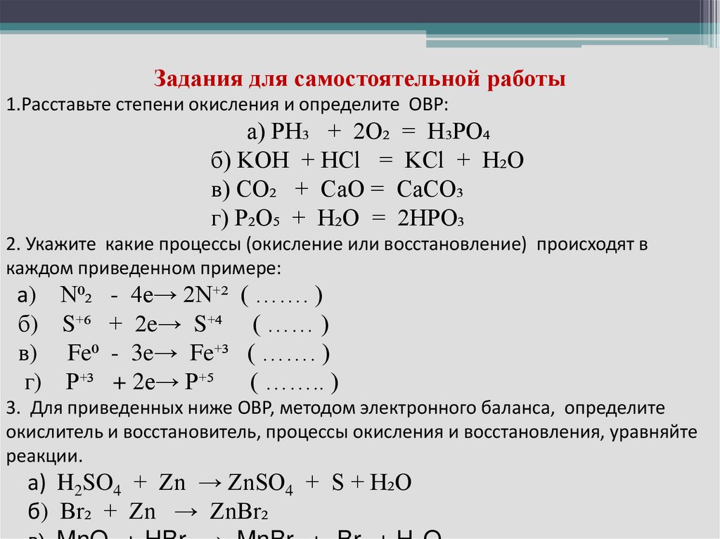 Задания для самостоятельной работы1.Расставьте степени окисления и определите ОВР: