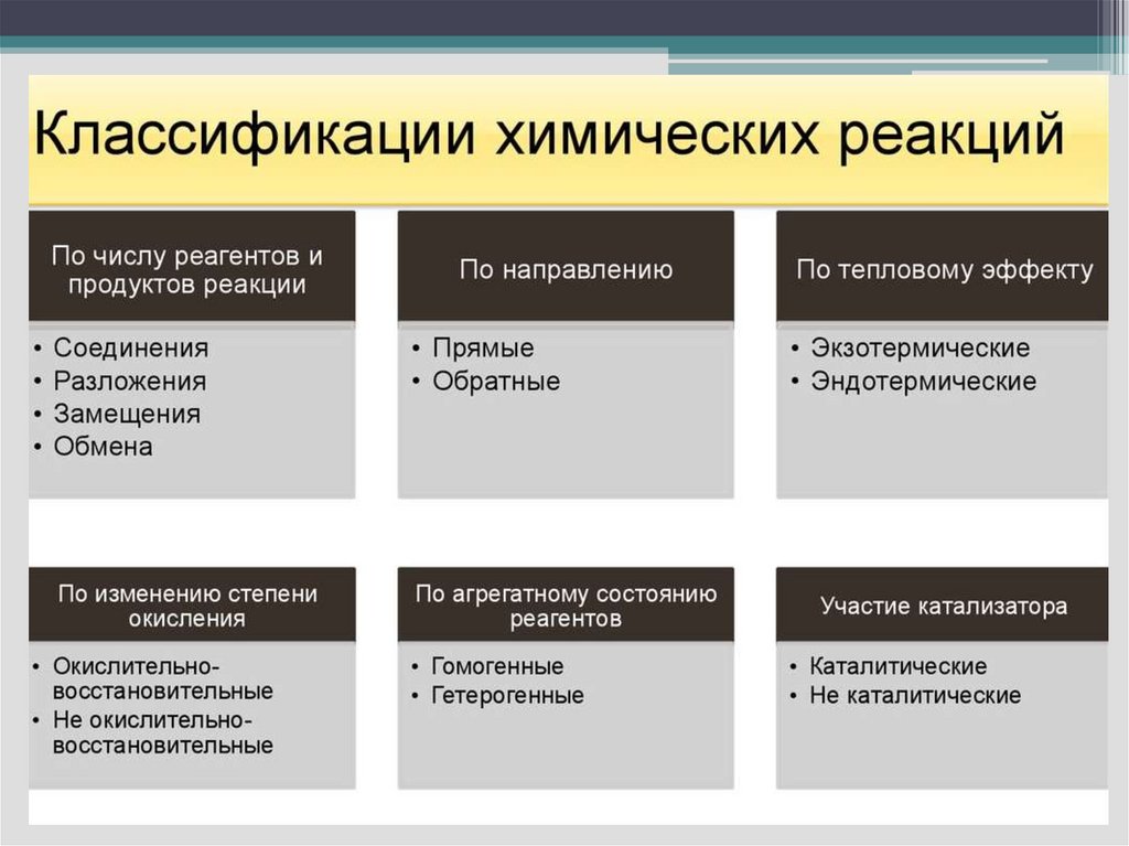Классификация химических реакций:по числу реагентов и продуктов реакций;