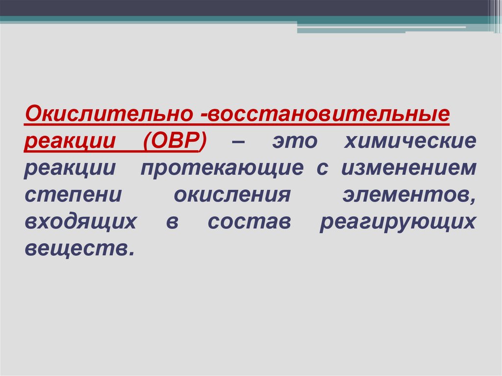 Окислительно -восстановительныереакции (ОВР) – это химические