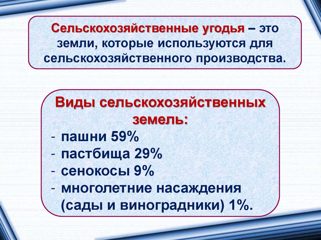 Сельскохозяйственные угодья – этоземли, которые используются для
