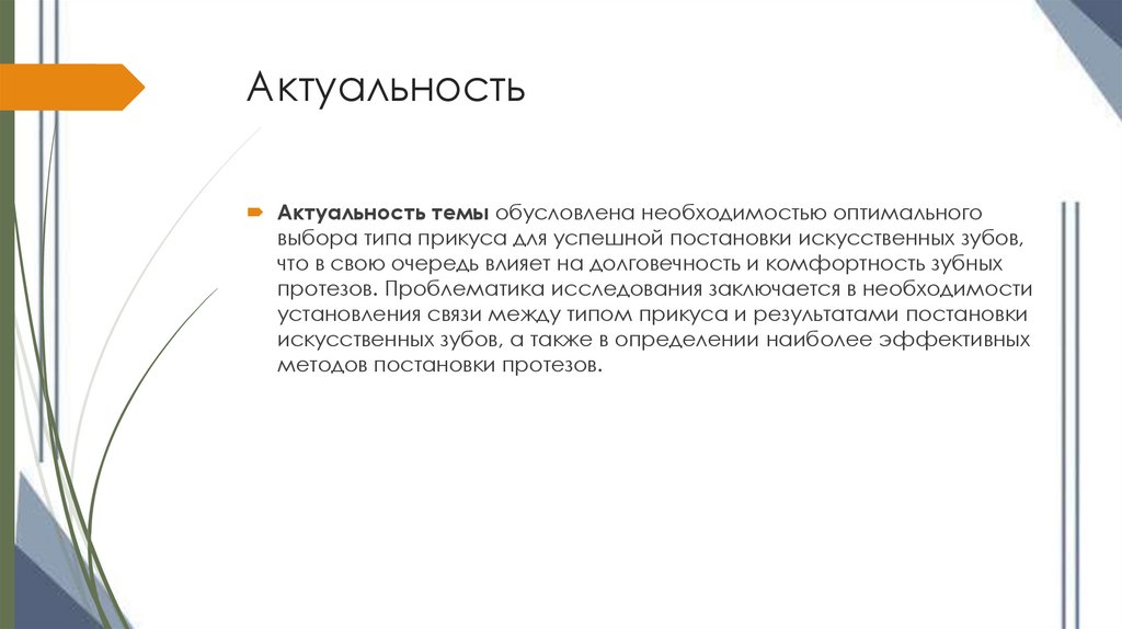 протезов. Проблематика исследования заключается в необходимости