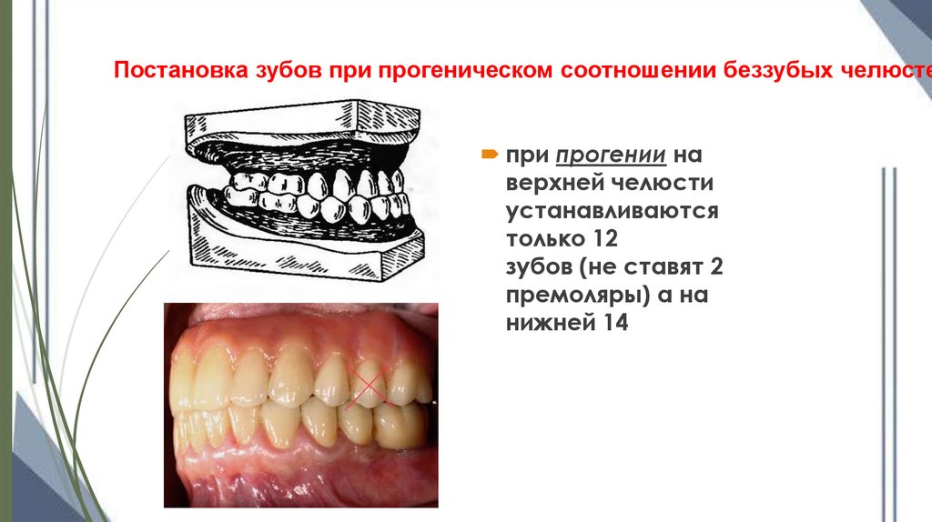 Постановка зубов при прогеническом соотношении беззубых челюстепри прогении на
