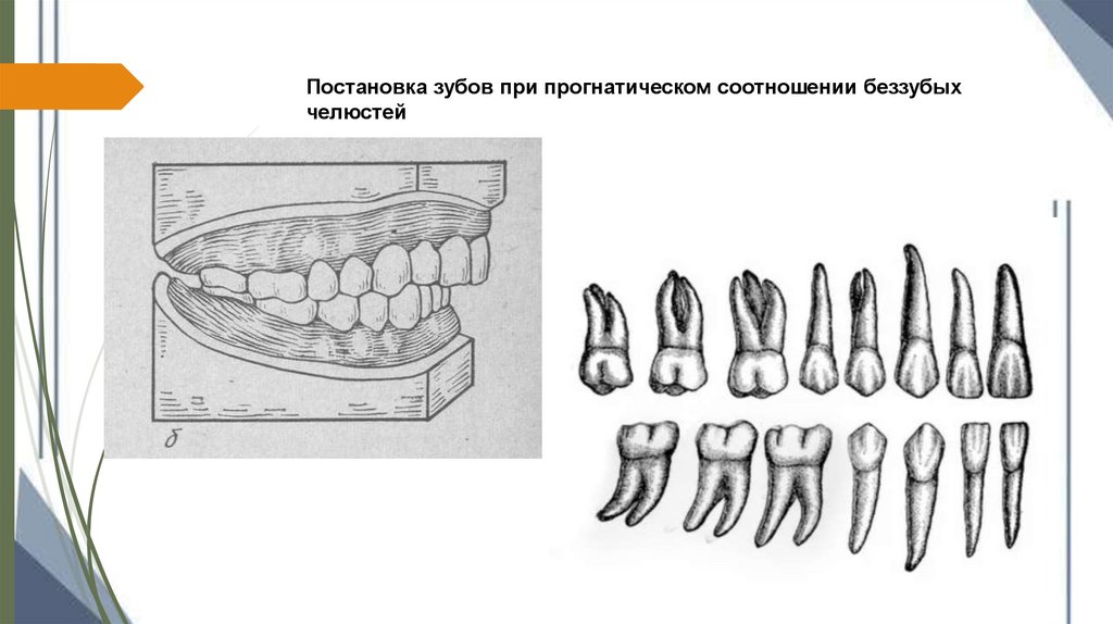 Постановка зубов при прогнатическом соотношении беззубыхчелюстей